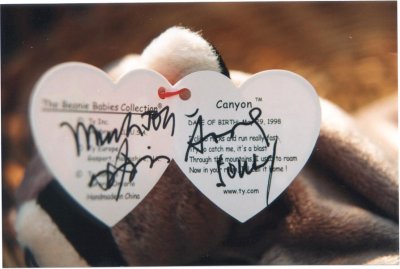 David Soul, Singer and star of films such as Salems Lot has kindly signed two Beanies, Punce ( his birthday Beanie ) and the recently retired Canyon. Many thanks to Jenny who got hold of these signatures.