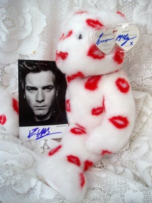 Ewan, who was Obi Wan Kenobi in Star Wars Episode I and also became famous in the film Trainspotting has signed both a photo and Obi Wan Bean Bag. . He was filming in Australia at the time this was signed and the beanie was taken out to him on location. It comes with a 7x5 black and white picture which has also been signed by Ewan. A must for all Star Wars Fans!