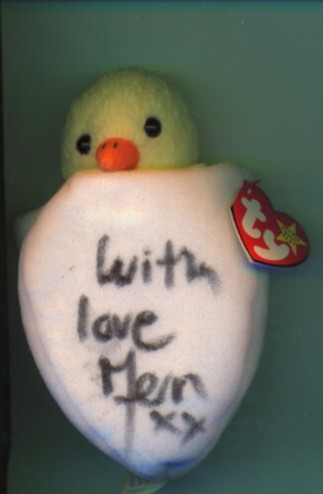 Frern is best nown recently for presenting the popular cooking programme, Ready Steady Cook ( The UK's equivalent of Get Set Cook ). So obviously the nearest Beanies™ to a food theme were sent for signing, Gobbles, Eggbert and Jake.