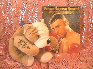 Charasmatic, extrovert, whatever you want to say about him, Naz, has taken time out to sign the Pillow Pal Bruiser. The world champion has also recently become an MBE - Top Bloke !!
