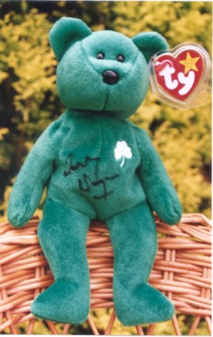 Jolly radio and TV Presenter has signed an retured a Beanie, can you guess which one, well its Erin the Irish Bear of course.